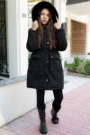 Antrasit Kapaklı Cepli İçi Kürklü Çıkarılabilir Kapüşonlu Kız Çocuk Şişme Mont 21523