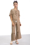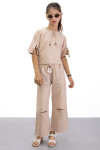 Bej Boyundan Bağlamalı Tişörtlü Kız Çocuk Pantolonlu 2li Takım 21187