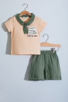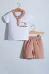 Bej Erkek Bebek Gemici Yaka Tişörtlü Şortlu Takım