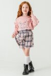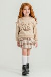 Bej Kız Çocuk Tavşan Nakışlı Ekose Desenli Şort Etekli 2'li Takım 21539