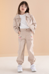 Bej Nakış Detaylı Gömlekli Pantolonlu Kız Çocuk 3lü Takım 20159