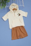 Bej Palmiye Baskılı Kanguru Cepli Erkek Bebek Şortlu Takım 18517
