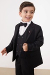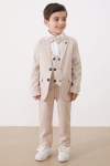 Kumaş İçeriği: %65 Pamuk %35 Polyester İçerikli Kumaştır. Papyonlu Beyaz Uzun Kollu Gömlek, Yelek, 2 Adet Cebe Sahip Ceket ve Pantolondan Oluşan Sade ve Şık Erkek Çocuk Takım Elbise Modeli. 30 Derecede Yıkayınız. Çamaşır Suyuna Temas Ettirmeyiniz. Kuru Temizleme Önerilir. 110 Derecede Ütüleyiniz.