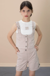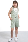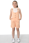 Bej Sıfır Kol Badili Düğmeli Yelekli Kız Çocuk 3lü Şortlu Takım 21033