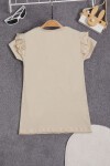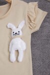 Bej Tavşan Detaylı Fırfırlı Kız Çocuk T-shirt 15541