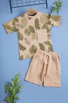 Bej Yaprak Desenli Erkek Çocuk Şortlu Yazlık Takım 15477