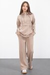 Bej Yarım Fermuarlı Kapüşonlu Kız Çocuk Geniş Paça Eşofman Takımı 23407