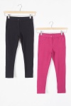 Beli Lastikli Kız Çocuk Cepli 2'li Basic Tayt Siyah-Fuşya 19496