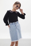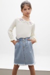 Kumaş İçeriği: %100 Pamuk İçeriklidir. Türkiye'de Üretilmiştir. Yakası Çiçek Nakışlı Ekru Bluz ve Beli Lastikli Kot Etekten Oluşan Kız Çocuk Takım Modeli. Maksimum 30 Derece Sıcaklıkta Yıkayınız. Ağartıcı Kullanmayınız. Orta Sıcaklıkta Ütüleyiniz. Tamburlu Kurutma Yapmayınız. Kuru Temizleme Önerilmez.