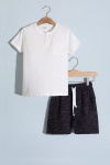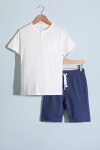 Kumaş İçeriği: %100 Pamuk İçerikli Kumaştır. Türkiye'de Üretilmiştir. Beyaz Kısa Kollu, Bisiklet Yaka Göğüs Cep Detaylı T-shirt ve Şorttan Oluşan Erkek Çocuk Takım Modeli. Maximum 30 Derece Sıcaklıkta Yıkayınız. Ağartıcı Kullanmayınız. Orta Sıcaklıkta Ütüleyiniz. Kuru Temizleme Önerilmez. Tamburlu Kurutma Uygulanmaz.