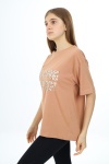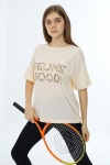Beyaz Leopar Desenli Yazılı Bisiklet Yaka Kız T-shirt 17780