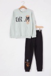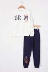 Beyaz Yazı Baskılı Kanguru Cepli Erkek Çocuk Eşofman Takımı 19017