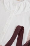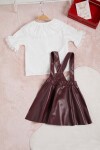 Bordo Deri Etekli Bluzlu Kız Çocuk Salopet Takım 15559