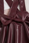 Bordo Deri Etekli Bluzlu Kız Çocuk Salopet Takım