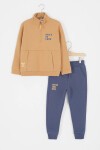 Bordo Fermuarlı Yaka Yazılı Erkek Çocuk Polarlı Eşofman Takımı 16742