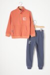 Bordo Fermuarlı Yaka Yazılı Erkek Çocuk Polarlı Eşofman Takımı