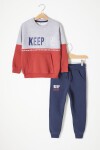 Bordo Kanguru Cepli Yazı Baskılı Erkek Çocuk Polarlı Eşofman Takımı 16734