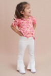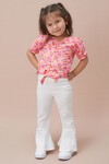 Kumaş İçeriği: %100 Pamuk İçerikli Kumaştır. Ürünü 30 Derece Sıcaklıkta Yıkayınız. Çamaşır Suyu Kullanmayınız. Orta Sıcaklıkta Ütüleyiniz. Kurutucuda Kurutmayınız. Kuru Temizleme Önerilmez. Yaz mevsimini yansıtan, şık çiçek desenleriyle hoş bir hava sağlayan gömlek ve İspanyol Paça pantolondan oluşan 2li Kız Çocuk Takım. İnce ve rahat kumaşıyla konforlu bir kullanım sağlar. Bel Kısmı Lastikli ve esnektir. Birbirinden Canlı ve sevimli renkleriyle Kız Çocuk Pantolon ve Gömlekli 2li Takım.