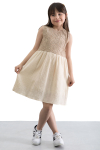 Kahverengi Dantel İşlemeli Müslin Kız Çocuk Elbise 20780