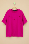 Kumaş İçeriği: 98 Pamuk %2 Elastan İçeriklidir. Türkiye'de Üretilmiştir. Gül Nakışlı, Kısa Kollu Oversize Kesim ile Şık Kız Çocuk Tişört Modeli.