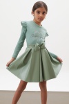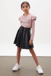 Kumaş İçeriği: %95 Pamuk %5 Likra İçeriklidir. Türkiye'de Üretilmiştir. Kalp Baskılı Payet İşlemeli, Uzun Kollu Volanlı Sweatshirt ve Fiyonklu Deri Etekten Oluşan Şık Kız Çocuk 2li Takım Modeli. Maksimum 30 Derece Sıcaklıkta Yıkayınız. Ağartıcı Kullanmayınız. Orta Sıcaklıkta Ütüleyiniz. Tamburlu Kurutma Yapmayınız. Kuru Temizleme Önerilmez.