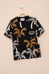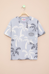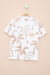 Ekru Palmiye Desenli Yazılı Cepli Erkek Çocuk Bisiklet Yaka Tişört