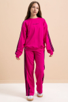 Kumaş İçeriği: %95 Pamuk %5 Elastan İçeriklidir. Şerit Detaylı Bisiklet Yaka Sweatshirt ve Geniş Paça Tek Alttan Oluşan Şık Kız Çocuk Eşofman Takım Modeli.