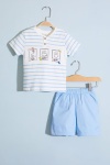 Kumaş İçeriği: %100 Pamuk İçerikli Kumaştır. Türkiye'de Üretilmiştir. Çizgi Desenli Baskılı, Bisiklet Yaka T-shirt ve Keten Şorttan Oluşan Erkek Bebek Şortlu Takım Modeli. Maximum 30 Derece Sıcaklıkta Yıkayınız. Ağartıcı Kullanmayınız. Orta Sıcaklıkta Ütüleyiniz. Kuru Temizleme Yapılmaz. Tamburlu Kurutma Uygulanmaz.
