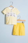 Erkek Bebek Kahverengi Çizgili Emoji Baskılı Şortlu Takım 18603