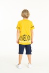 Kumaş İçeriği: %100 Pamuk. Bisiklet Yaka - Baskılı T-Shirt ve Şort Yazlık Takım. Son zamanların en trend kısa kollu T-shirt ve şortlu takım modeli ile fit bir görünüm elde edebilirsiniz. Standart kalıp ve rahat kesimi ile günlük ve yazlık kullanıma uygun inceliktedir. Su bazlı baskı özelliğine sahip. 30 derecede yıkanmalıdır. Kurutma makinesi ve çamaşır suyu kullanılmamalıdır.