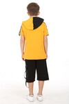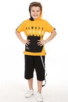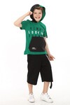 Kumaş İçeriği: %95 Pamuk %5 Likra. Erkek Çocuk Tişört ve Şort. Kapuşonlu Yaka. Konforlu kullanım sağlayan kumaştan üretilmiştir. Baskılı bisiklet yaka kısa kollu üst tişört. Beli lastikli şort. Hareket özgürlüğü sağlayan konforlu kullanımı ile çocuklarınızın severek giyeceği Erkek Çocuk Tişört ve Şort