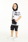 Kumaş İçeriği: %100 Pamuk. Kapüşonlu- Baskılı Kanguru Cepli . Son zamanların en trend kapüşonlu ve kısa kollu; T-shirt ve şortlu takım modeli ile fit bir görünüm elde edebilirsiniz. Standart kalıp ve rahat kesimi ile günlük ve yazlık kullanıma uygun inceliktedir. Su bazlı baskı özelliğine sahip. 30 derecede yıkanmalıdır. Kurutma makinesi ve çamaşır suyu kullanılmamalıdır.
