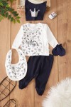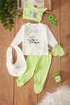 Fıstık Yeşili Prens Baskılı Şapkalı Erkek Bebek 5li Zıbın Takımı 17524