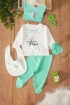 Fıstık Yeşili Prens Baskılı Şapkalı Erkek Bebek 5li Zıbın Takımı
