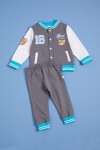 Füme Ayıcık Baskılı Kolej Ceketli Erkek Bebek Takım