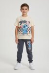 Füme Çizgi Karakter Baskılı Tişörtlü Erkek Çocuk Eşofman Takımı 23903
