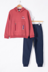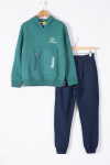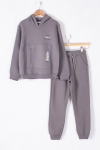 Füme Fermuar Cepli Kapüşonlu Şardonlu Erkek Çocuk Eşofman Takım 19602