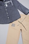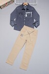Kumaş Materyali: %95 Pamuk % Elastan. Türkiye'de Üretilmiştir. Makinede Maksimum 30 Derecede Yıkayınız. Aynı Renklerle Yıkayınız. Çamaşır Suyuna Temas Ettirmeyiniz. Maksimum 110 Derecede Ütüleyiniz. Kuru Temizleme Yapılmaz. Kot Gömlek ve Beli Lastikli Pantolondan oluşan 2li Erkek Çocuk Takım. Kollarını katlayarak ya da uzun kullanabileceğiniz şekilde ayarlı gömlek. Beli lastikli ve esnek keten pantolon. Günlük yaşamda ve özel günlerde çocuklarınızın severek tercih edeceği Erkek Çocuk Takım.