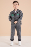 Füme Yazı Nakışlı Ceketli 3lü Erkek Çocuk Jean Takım