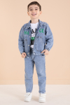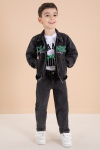 Füme Yazı Nakışlı Ceketli 3lü Erkek Çocuk Jean Takım 20003