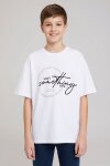 Kumaş İçeriği: %95 Pamuk %5 Elastan İçeriklidir. Bisiklet Yaka, Kısa Kollu Yazı Nakışlı ve Sırtı Baskı Detaylı Erkek Çocuk Tişört Modeli
