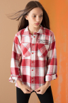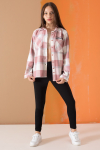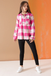 Fuşya Ekose Desenli Cepli Kız Çocuk Oduncu Gömlek 19683