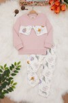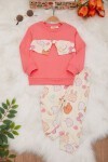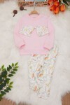 Fuşya Hayvan Desenli Fiyonklu Kız Bebek Takım