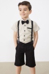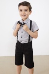 Gri Kısa Kol Gömlekli Papyonlu Erkek Çocuk Keten Şortlu Takım 18865