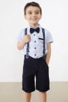 Kumaş İçeriği: %65 Pamuk %35 Polyester İçerikli Kumaştır. Kısa Kol, Göğüs Cep Detaylı Gömlek, Pantolon Askısı, Papyon ve Keten Şorttan Oluşan Şık Erkek Çocuk Takımı. 4 Parçadan Oluşan Erkek Takımı Çocuklarınızın Tarzına Tarz Katacak Modeldedir. Maximum 30 Derece Sıcaklıkta Yıkayınız. Ağartıcı Kullanmayınız. Orta Sıcaklıkta Ütüleyiniz. Kuru Temizleme Önerilmez. Tamburlu Kurutma Uygulanmaz.