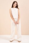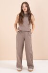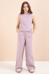 Gül Kurusu Geniş Paça Pantolonlu Kız Çocuk Keten Croplu Takım 23451