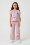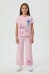 Gül Kurusu Kalpli Karakter Baskılı Geniş Paça Pantolonlu Kız Çocuk 2li Takım 23809