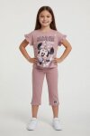 Gül Kurusu Minnie Desenli Tişörtlü Fitilli Pantolonlu Kız Çocuk Alt Üst Takım 23835