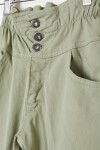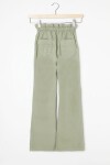 Haki İspanyol Paça Beli Lastikli Kız Keten Pantolon