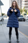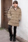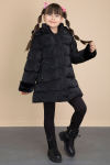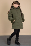 Haki Kolu Kürk Detaylı İçi Yünlü Kız Çocuk Kapüşonlu Şişme Mont 21328